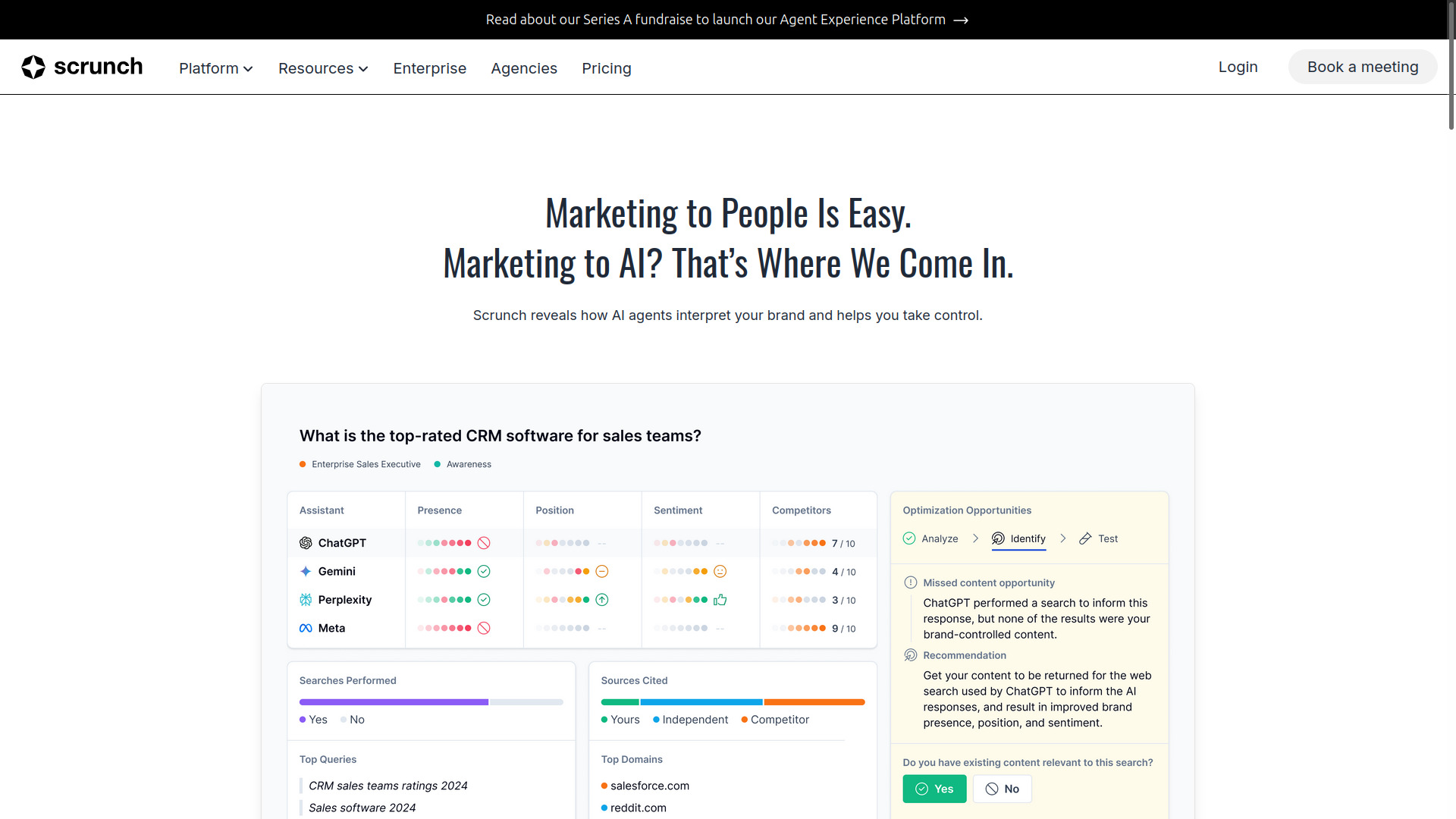 Scrunch AI is a platform designed to help brands track, analyse, and optimise their appearance in AI-generated answers across popular tools like ChatGPT, Gemini, and Perplexity. It aims to reveal how AI agents interpret a brand and enable brands to take control of their narrative. The platform delivers four key capabilities: monitoring, knowledge hub, insights, and journey mapping.