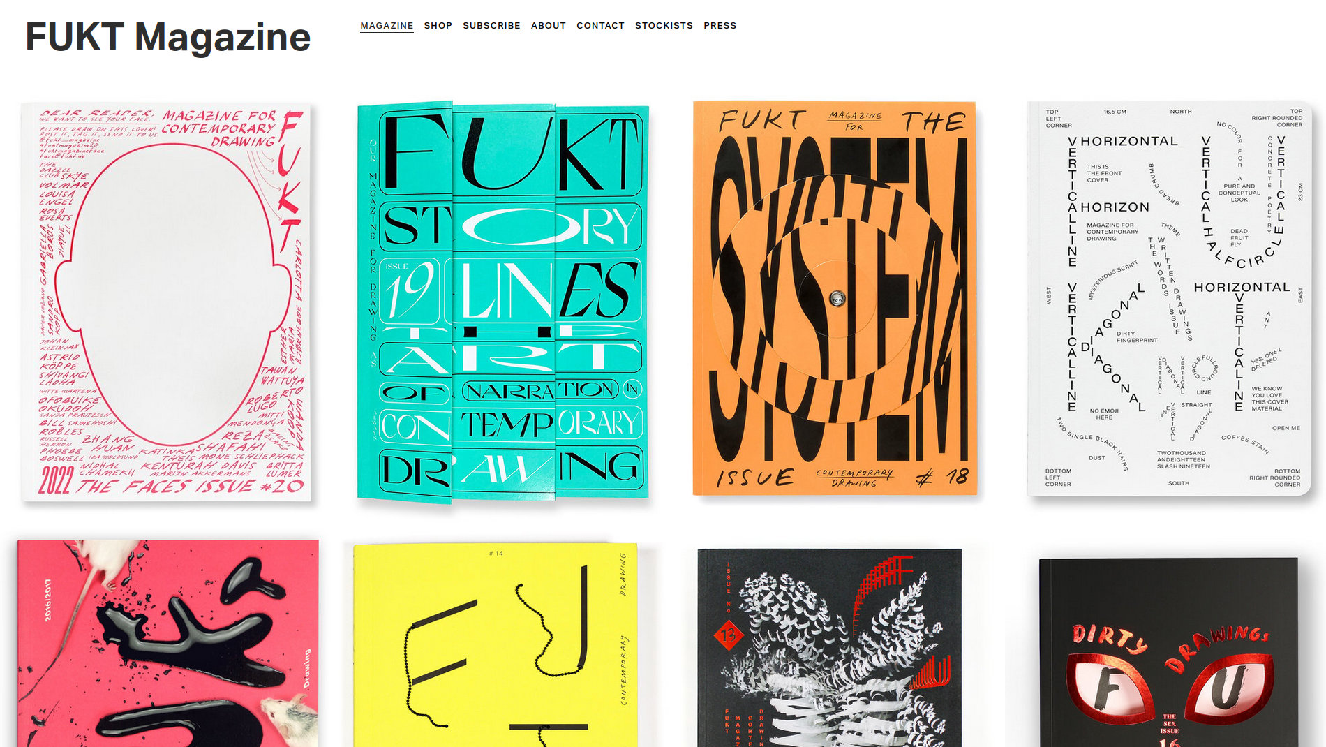 As one of the world’s leading drawing magazines, FUKT introduces you to outstanding creatives from around the globe ranging from emerging talents to long-established artists. Featured with artists’ interviews, and essays, the award-winning magazine is notable for its unrestricted layout and covers.
