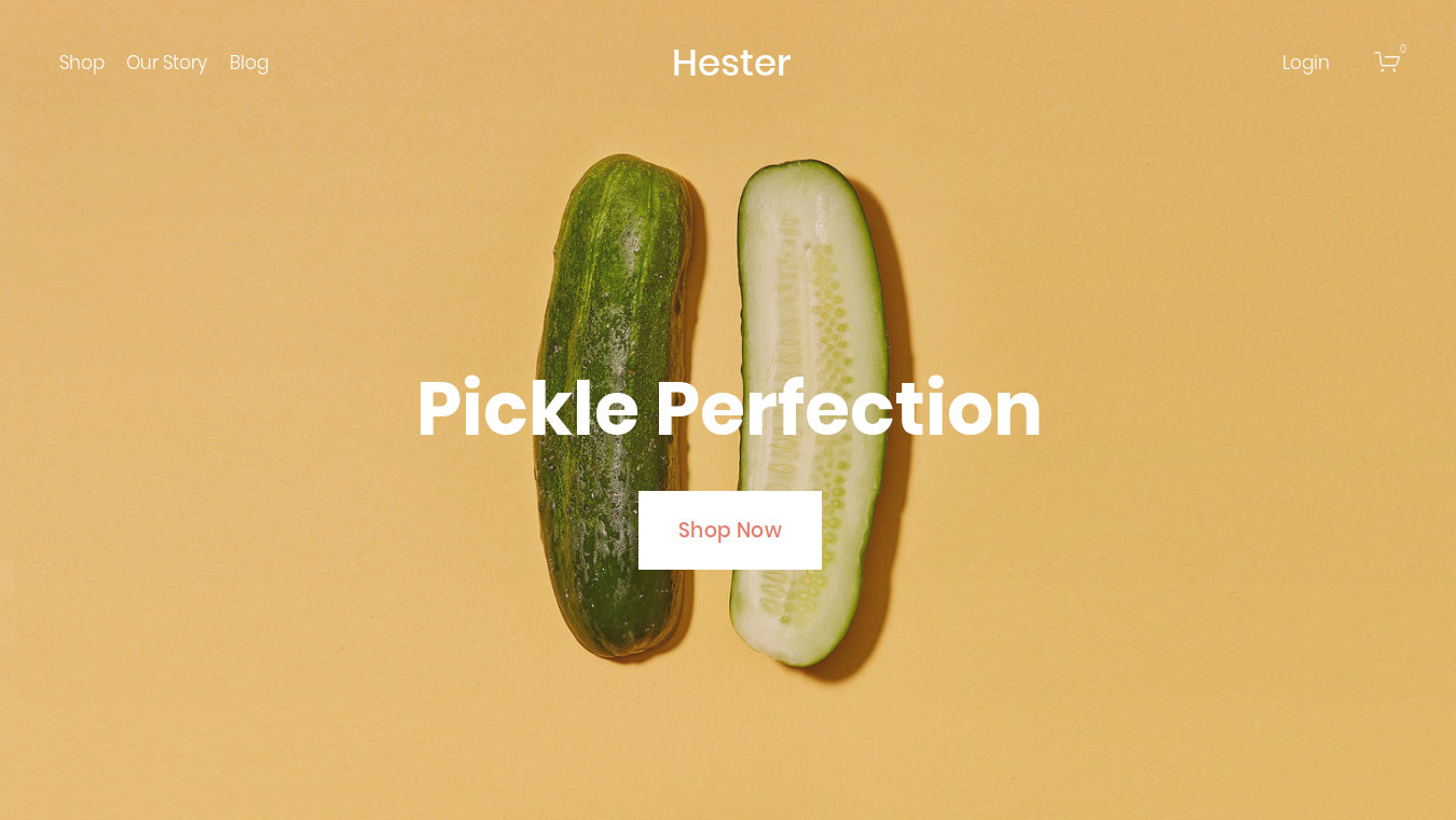 Hester is a Squarespace Template for Portfolios. It includes the sections: Home, Shop, Our Story, Blog, Login.