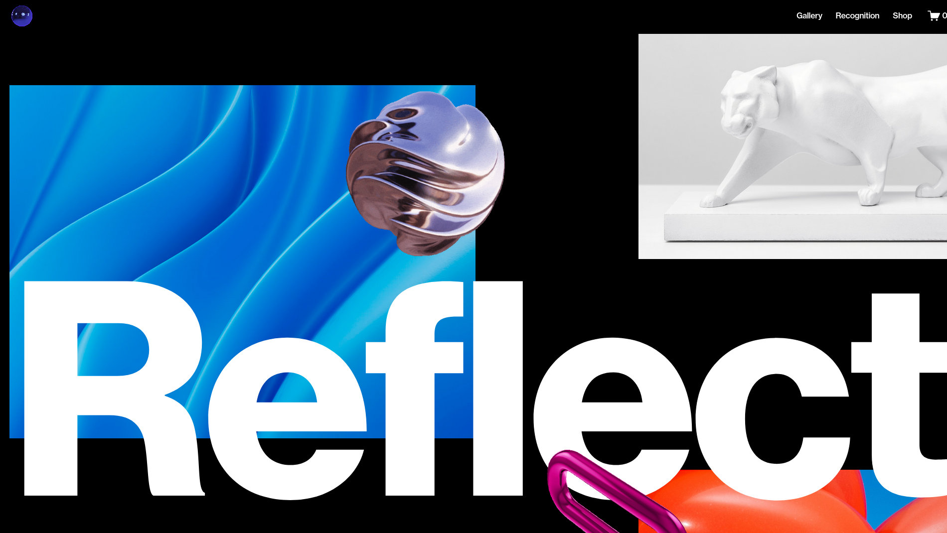 As per default the homepage features many images and animations that can can be scrolled trough. This "scroll trough" can showcase major works and transport the main message in a very dense way. The most prominent element of the homepage is a very bold title which sticks to the bottom of the screen until we are approaching the end of the page. The gallery section displays a featured collection and various collections with attractive image carousels. The recognition section offers space and formats for awards, publications and press. In the shop section artworks (prints in the demo), all kinds of products and/or merchandise articles can be sold. The template also includes a footer where one can display a menu, social media links and contact information. Overall, Reflect is perfect for artists, photographers, designers and others who are looking to create a visually engaging portfolio website.